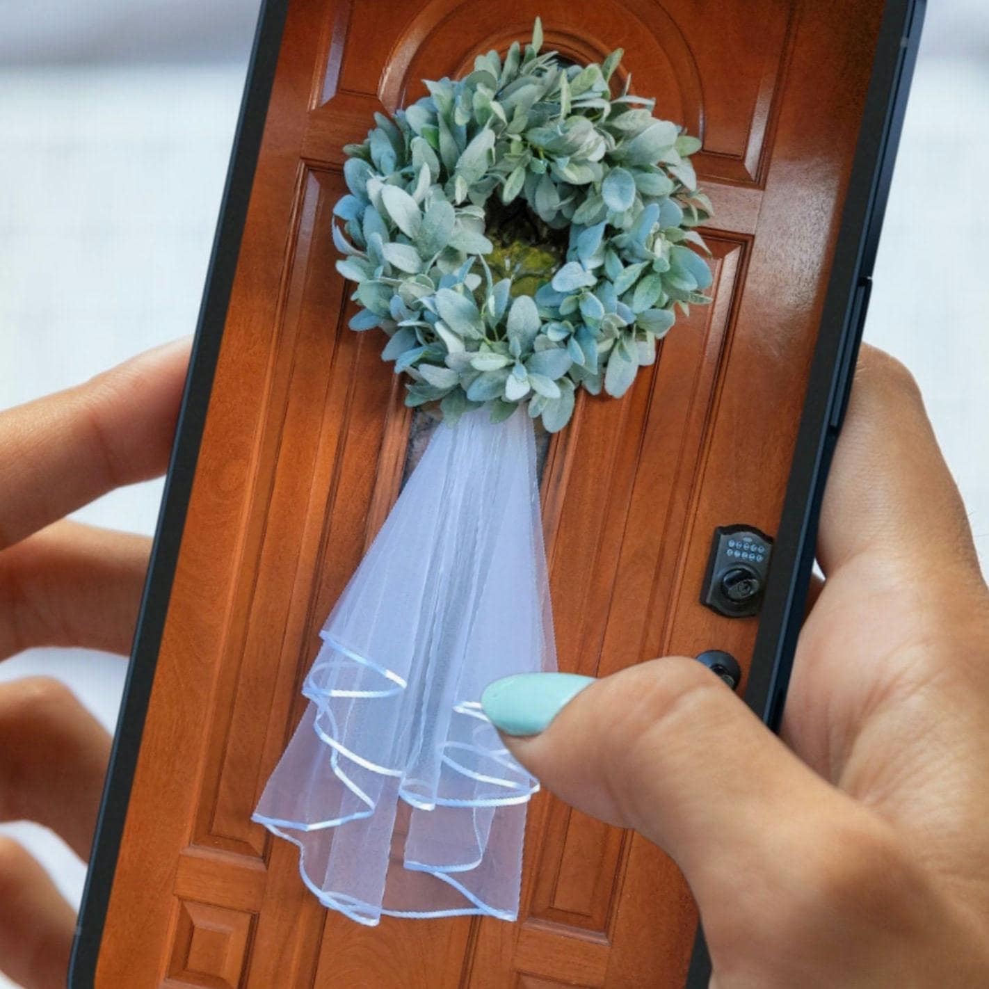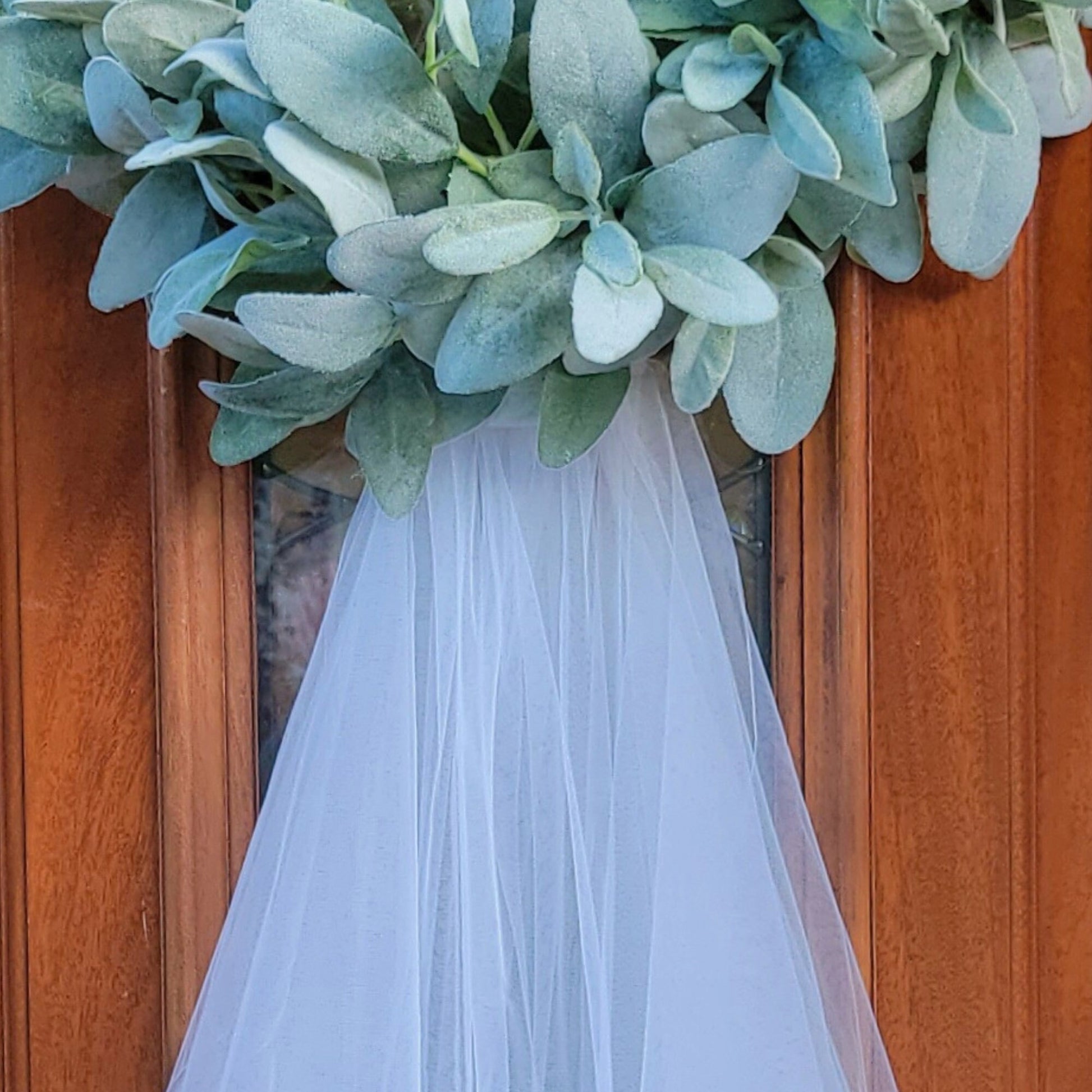 WOW, your guests upon arrival to celebrate your bridal shower, bachelorette party, & wedding day with this high-quality lambs ear front door wreath hanger with a veil. Excellent addition to your bridal shower decor and wedding day decorations. Also, a great gift for the bride-to-be to help her prepare for her special day.