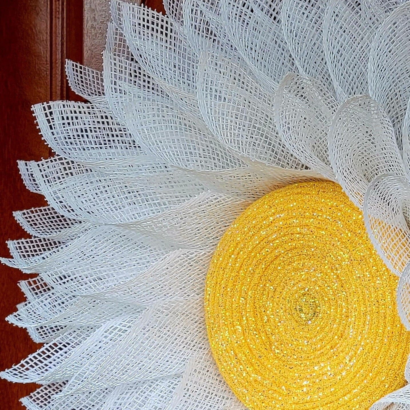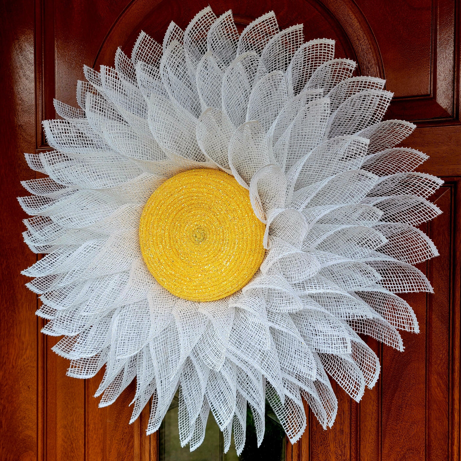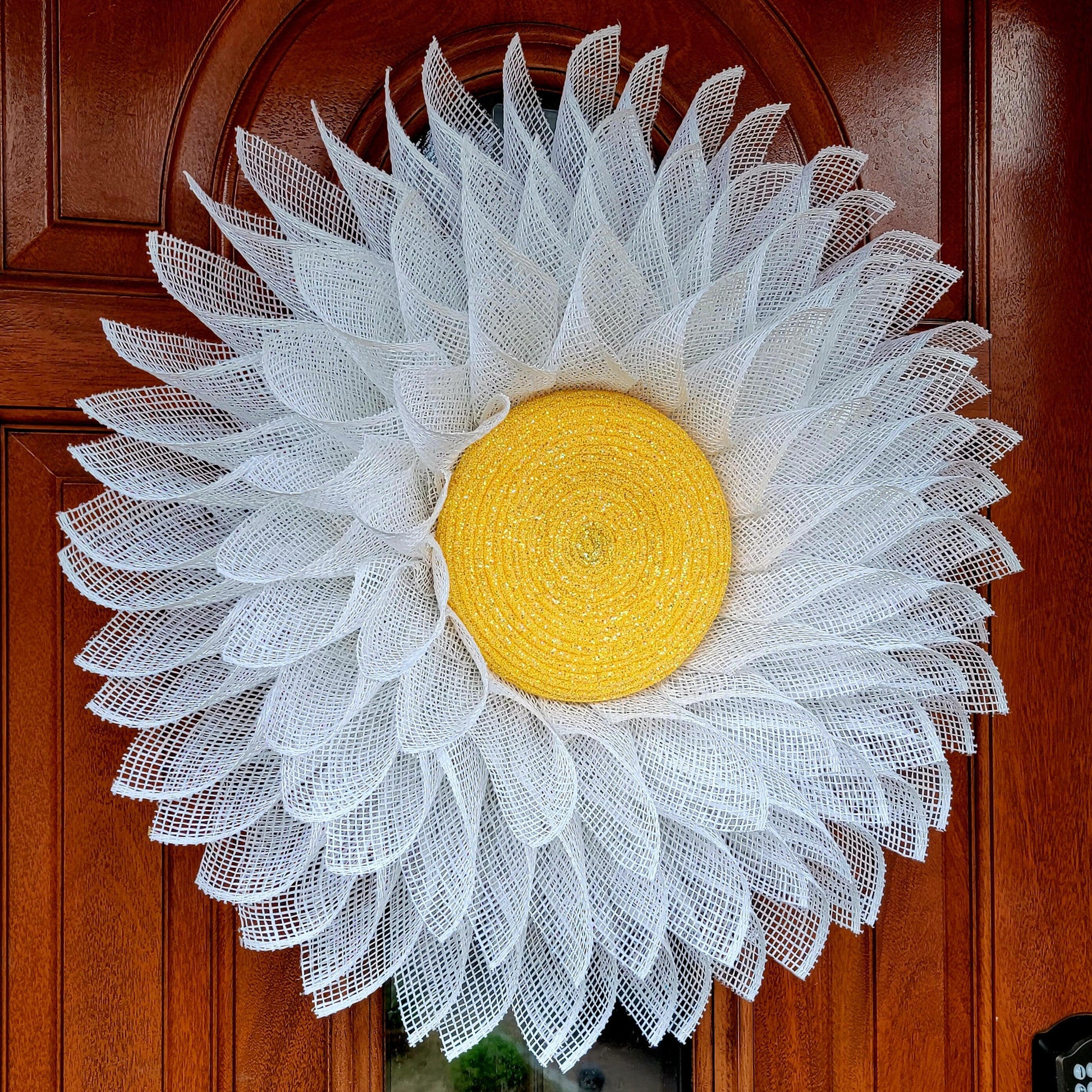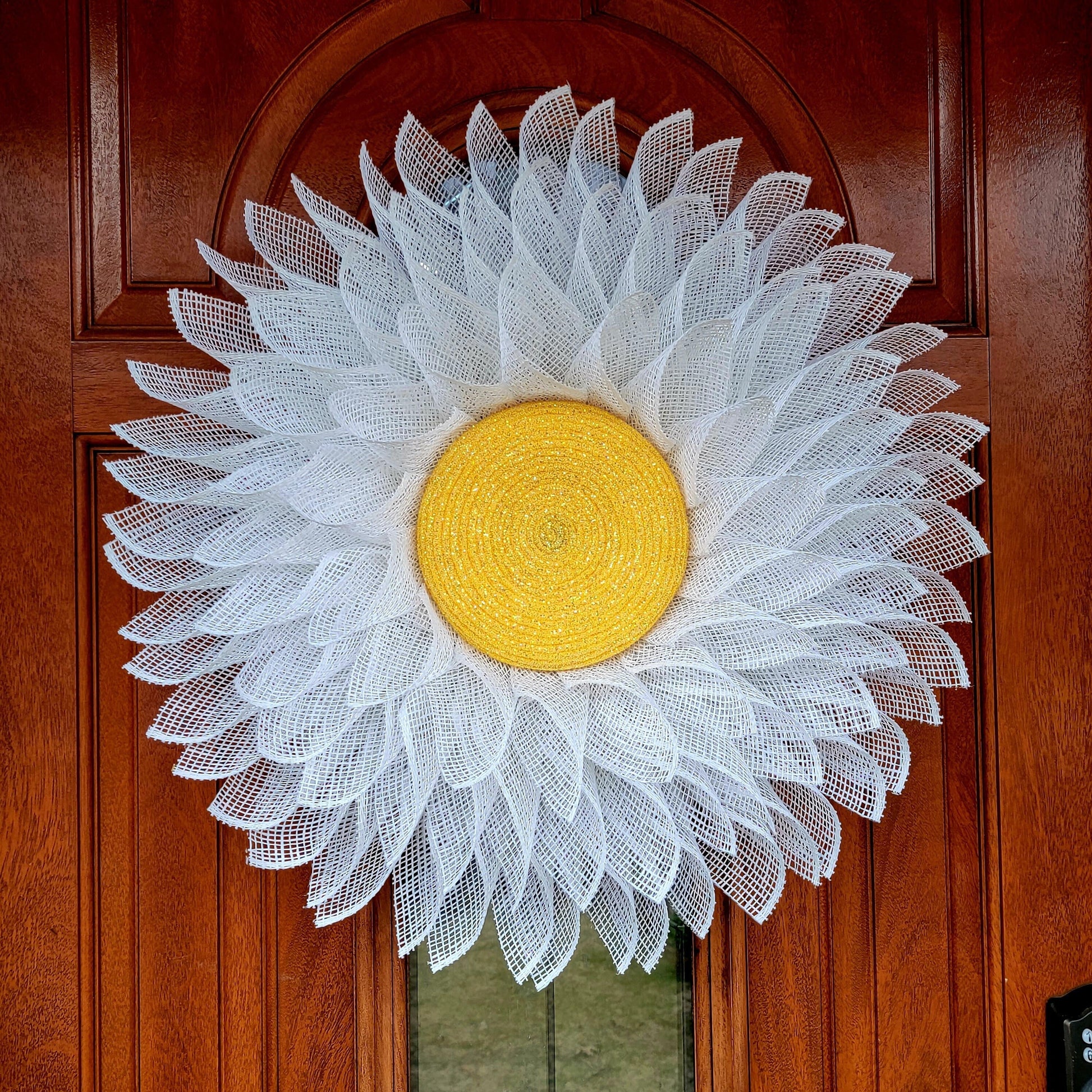 White Daisy Front Door Flower Wreath Indoor Outdoor Spring Summer Fall Seasonal Porch Decor Wall Decorations Daisies Bling Gift Ideas