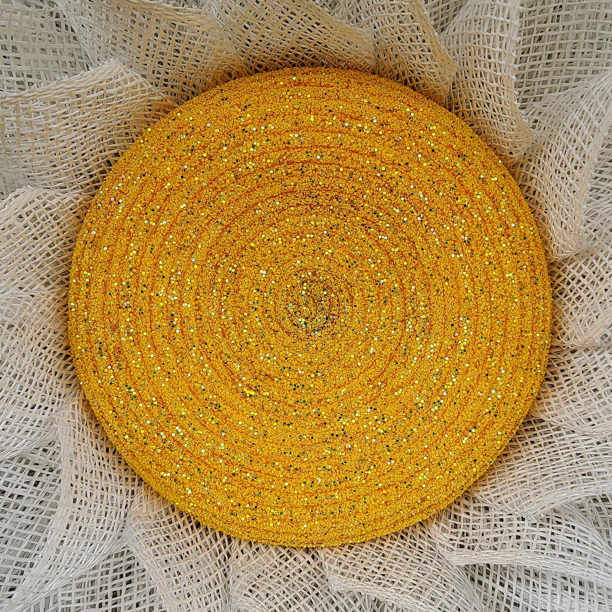 - The center features a realistic-looking styrofoam base sunflower head with simulated pollen droplets.