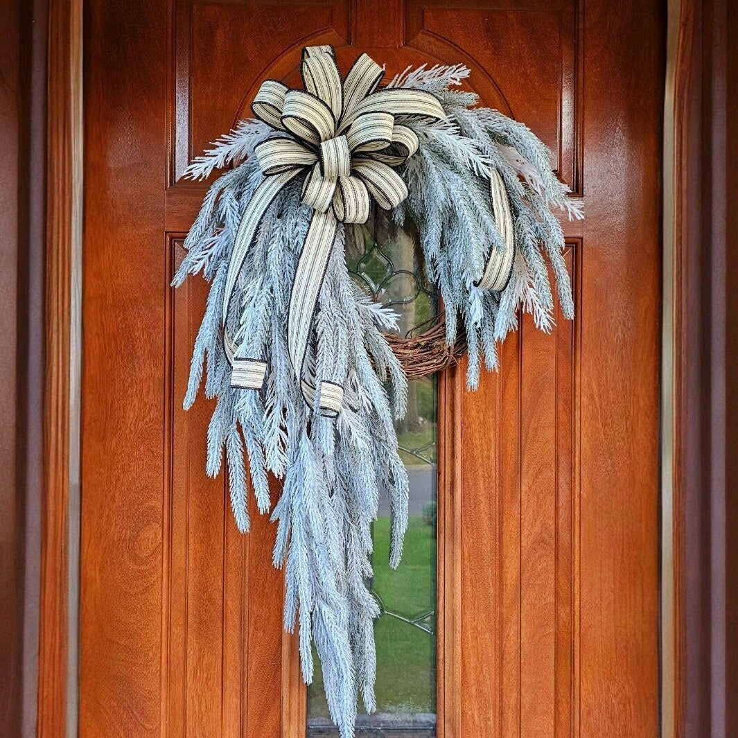 Winter White Wreath for Front Door Double Door Wreaths Large Unique Cascading Snowy Flocked Holiday Christmas Home Decor Housewarming Gift