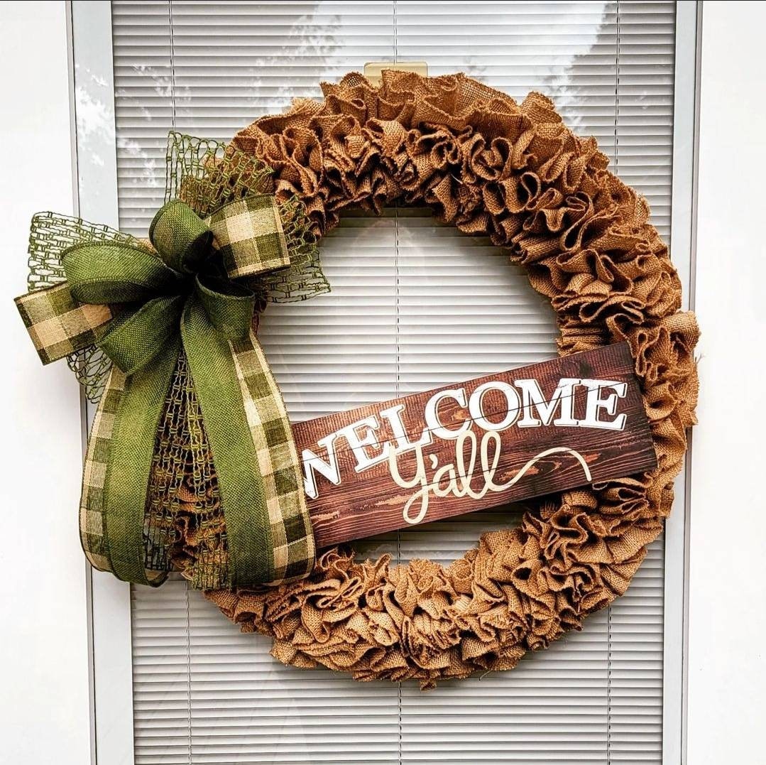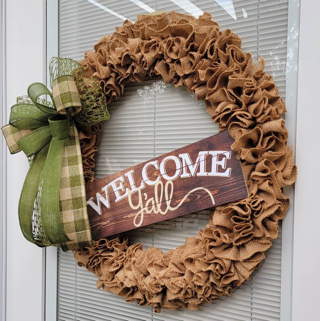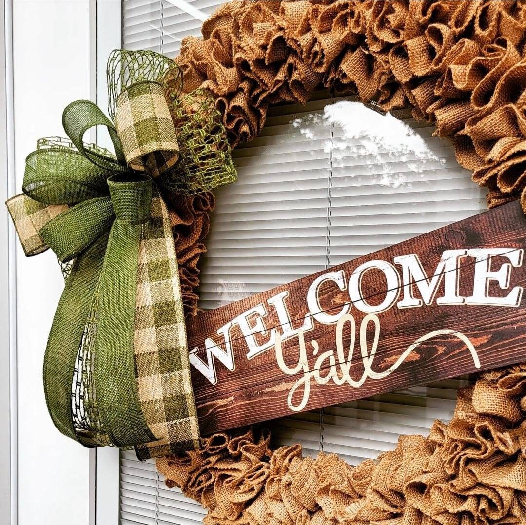 XL Outdoor Welcome Yall Burlap Front Door Wreath For Your Year Round Spring Summer Fall Winter Home Decor Seasonal Decorations Reef Gifts