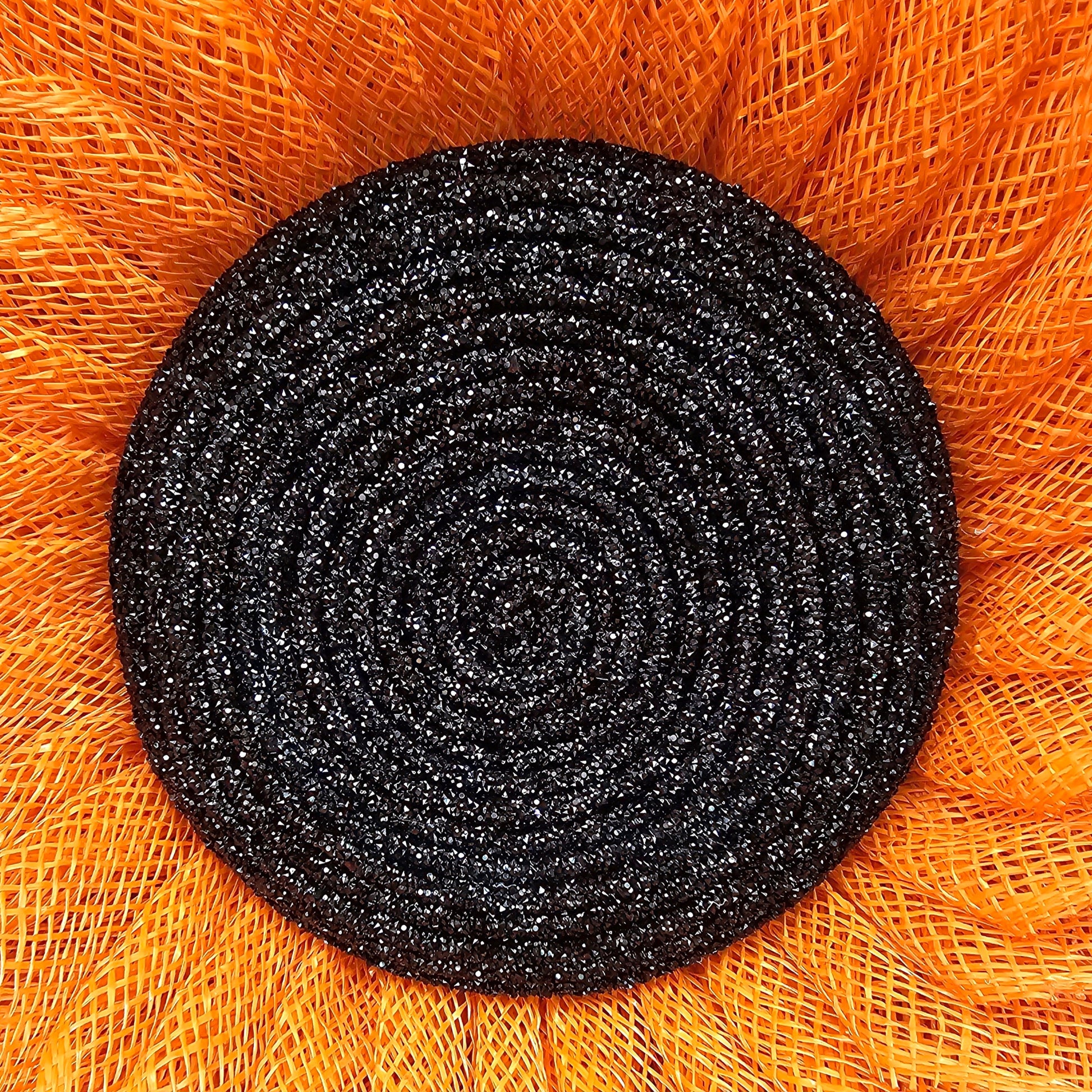 - The center features a realistic-looking styrofoam base sunflower head with simulated pollen droplets.