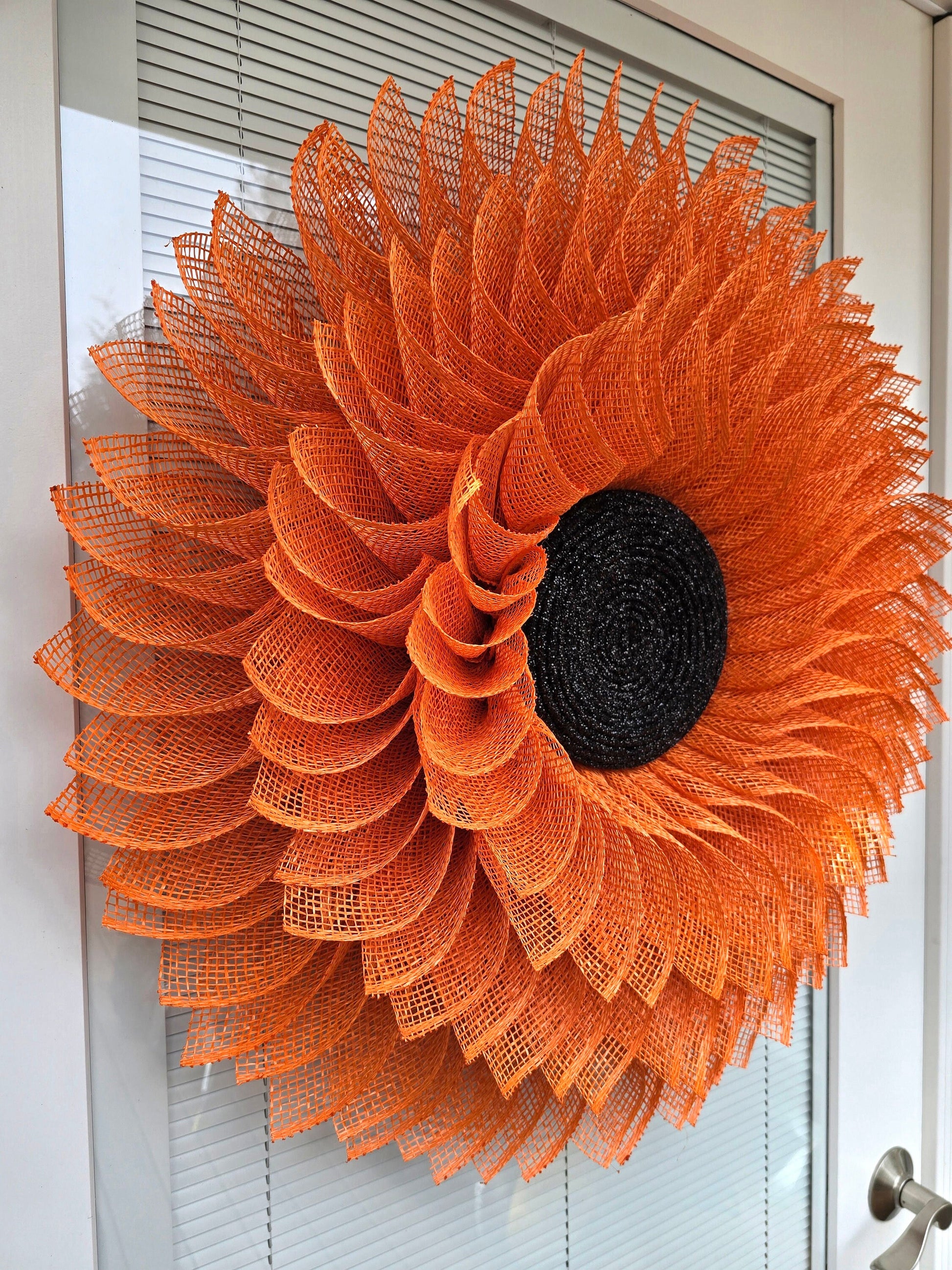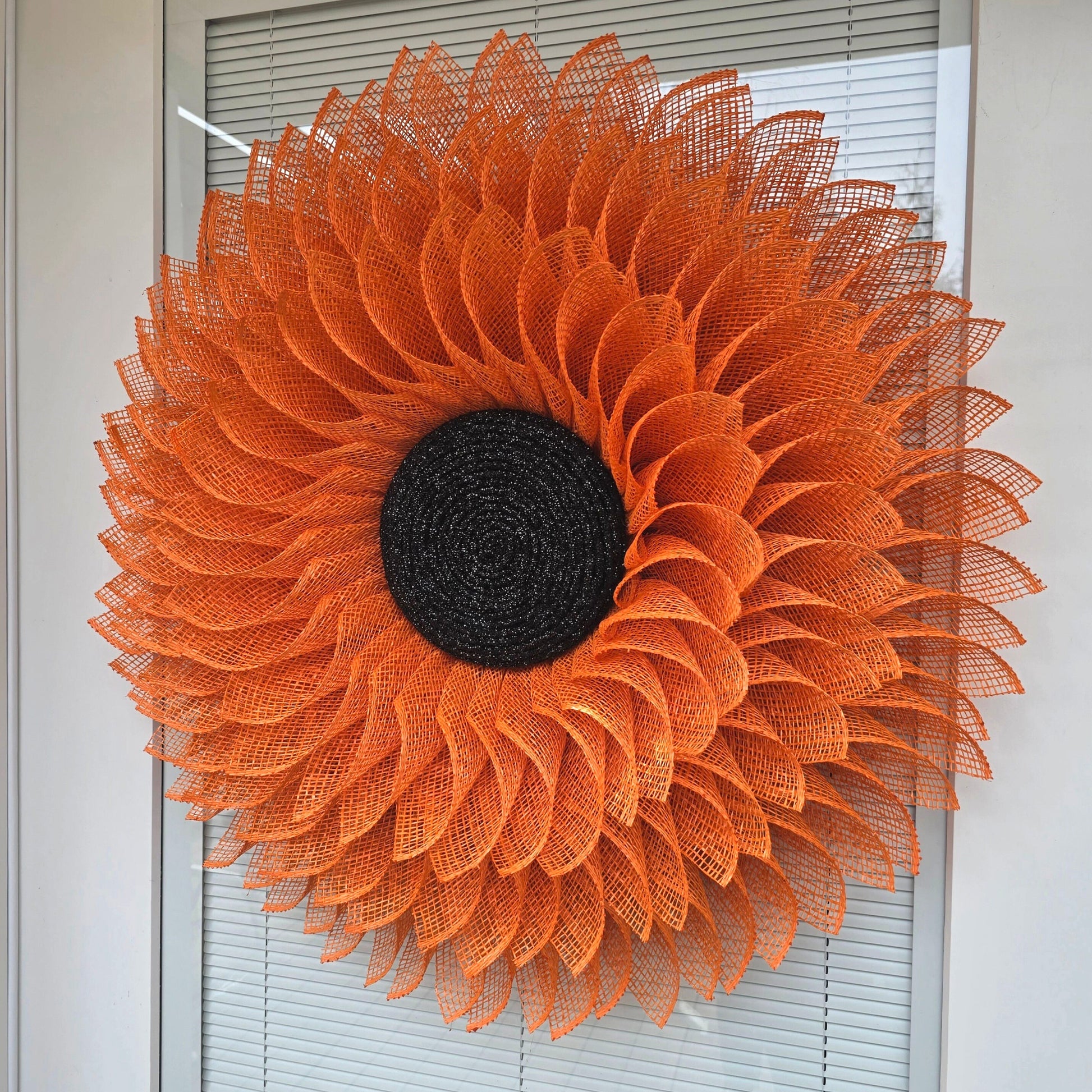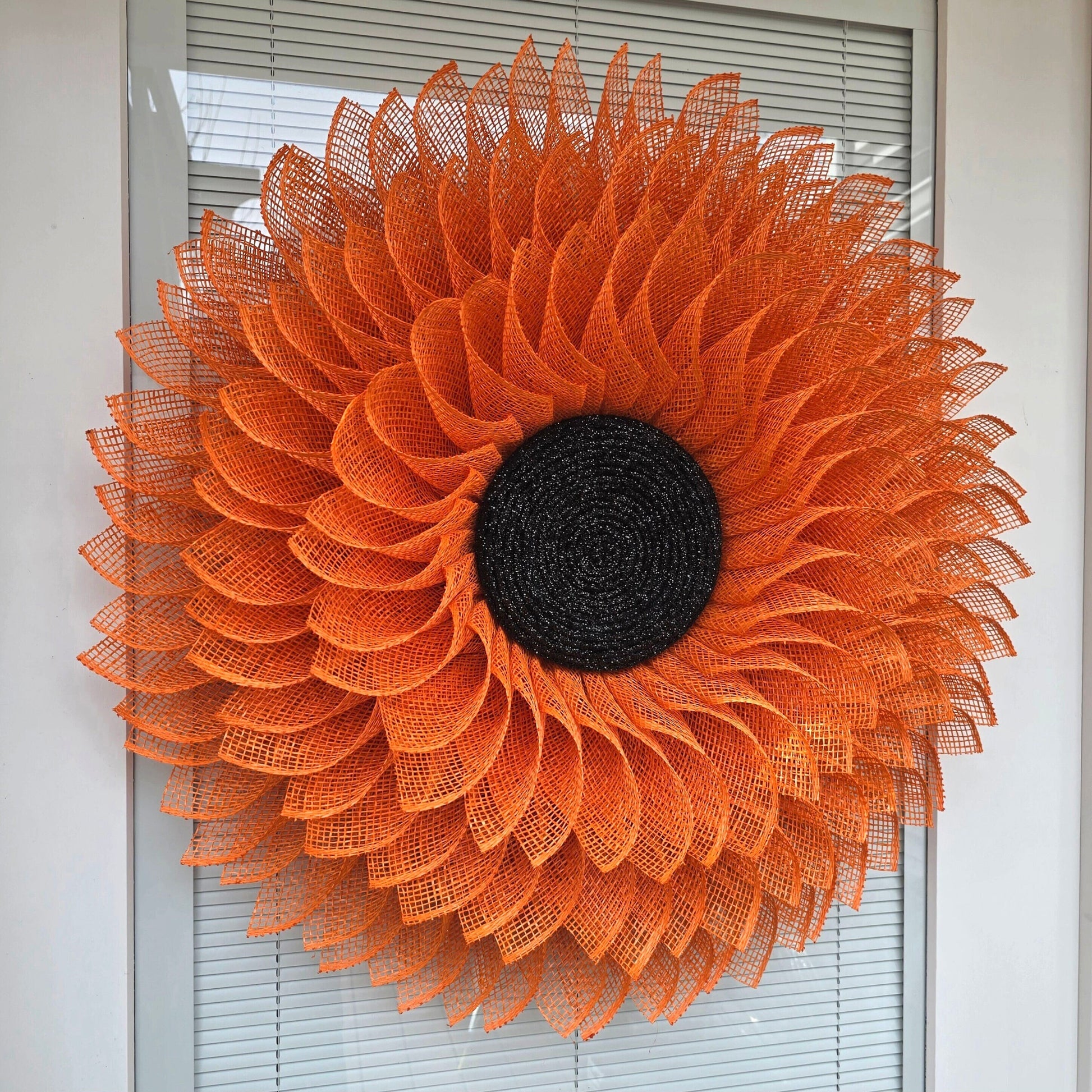XL Spring Summer Front Door Wreath, Double Door Decor, Outdoor Orange Burlap Daisy Flower, Home Sunflower Decoration, Handmade Bling Gift