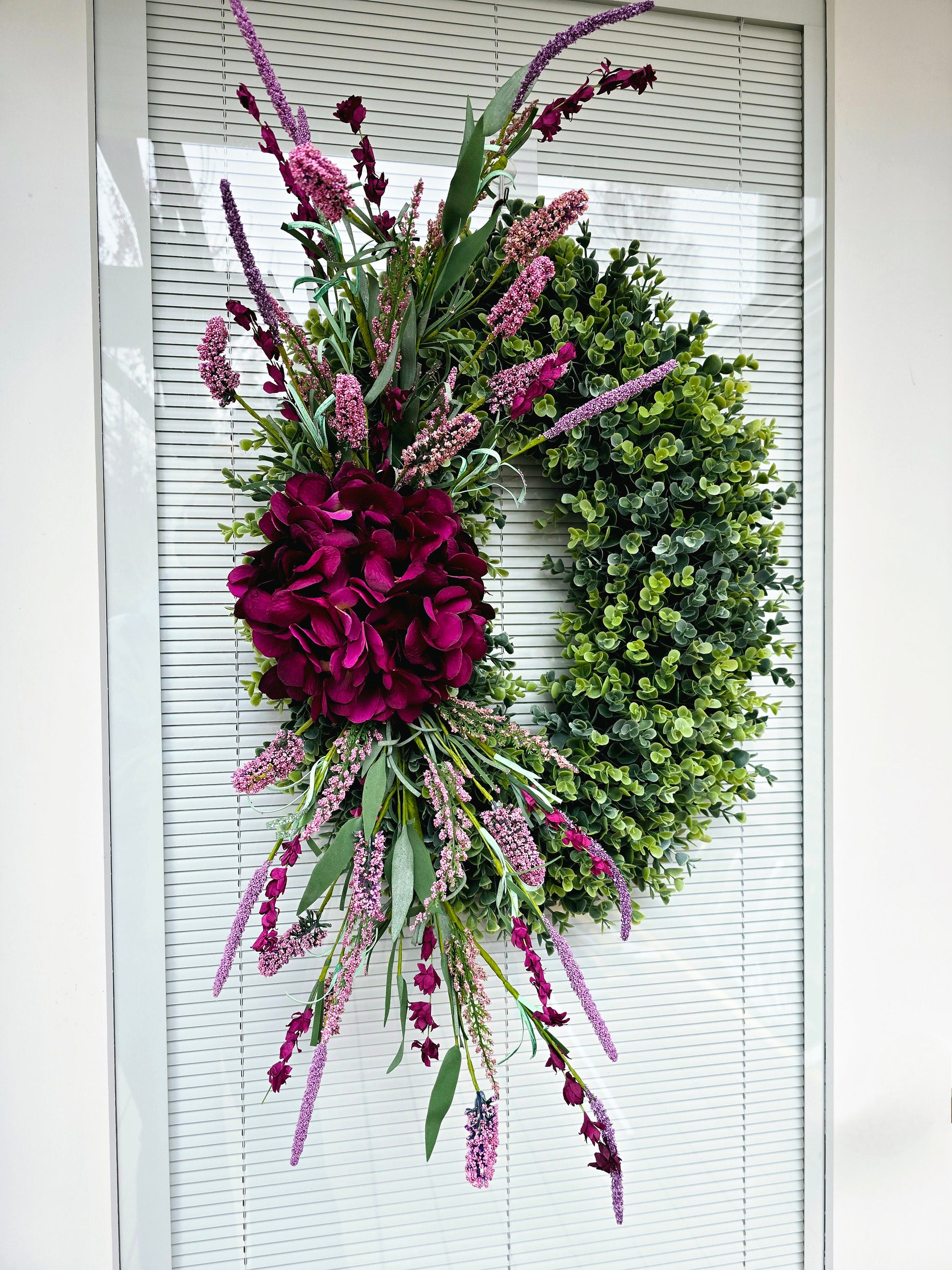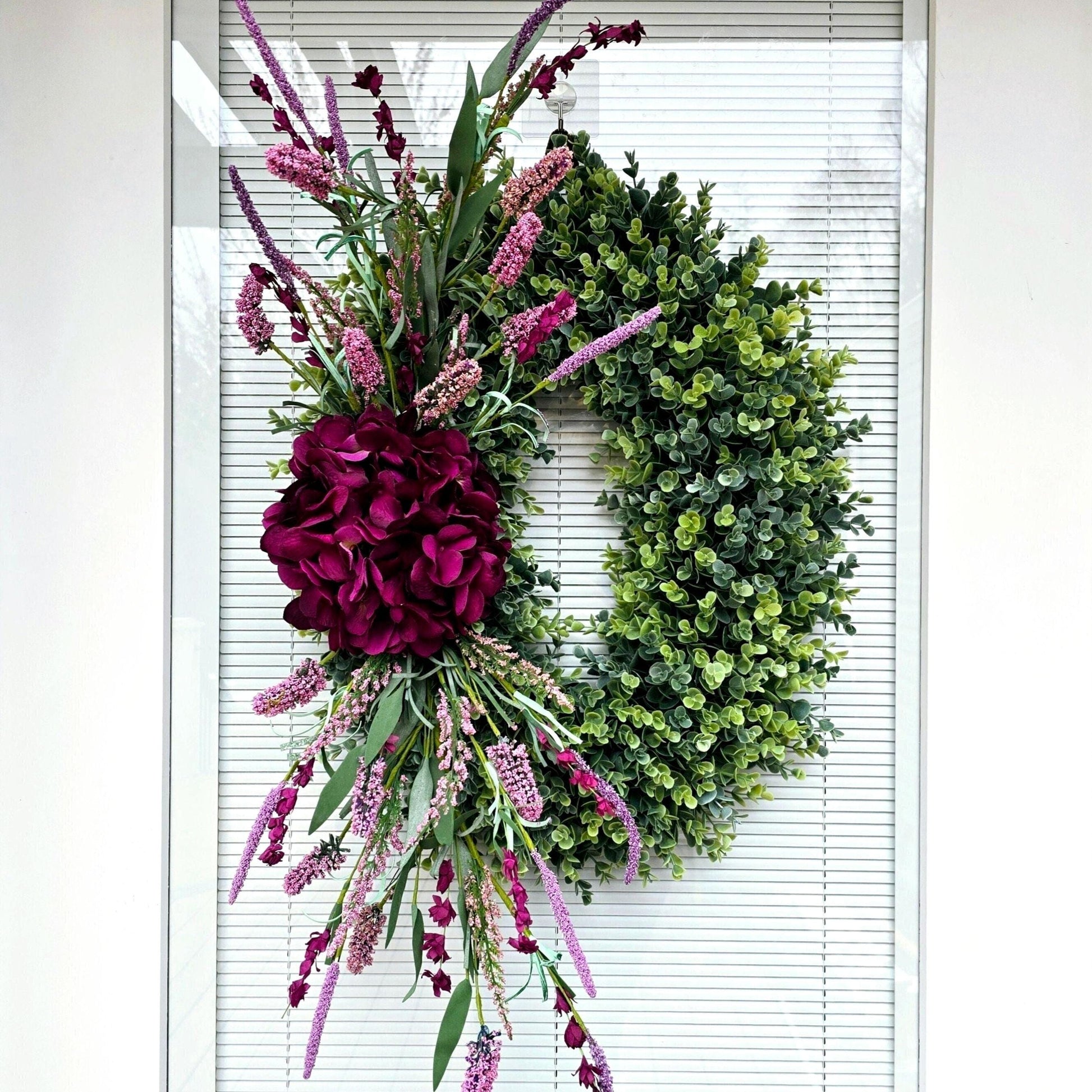Discover Elegance in Nature with Our Handcrafted Hydrangea, Lavender, and Eucalyptus Wreath